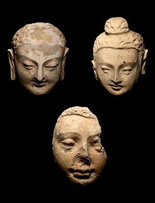 Three Gandharan Fragmentary Stucco Heads