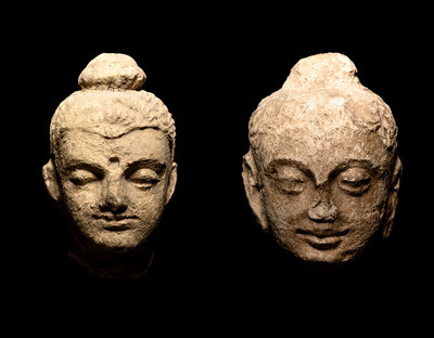 Two Gandharan Fragmentary Stucco Heads