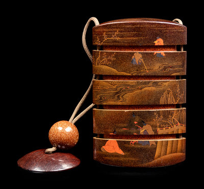 A Polychrome, Gold and Black Lacquer Four-Case Inro