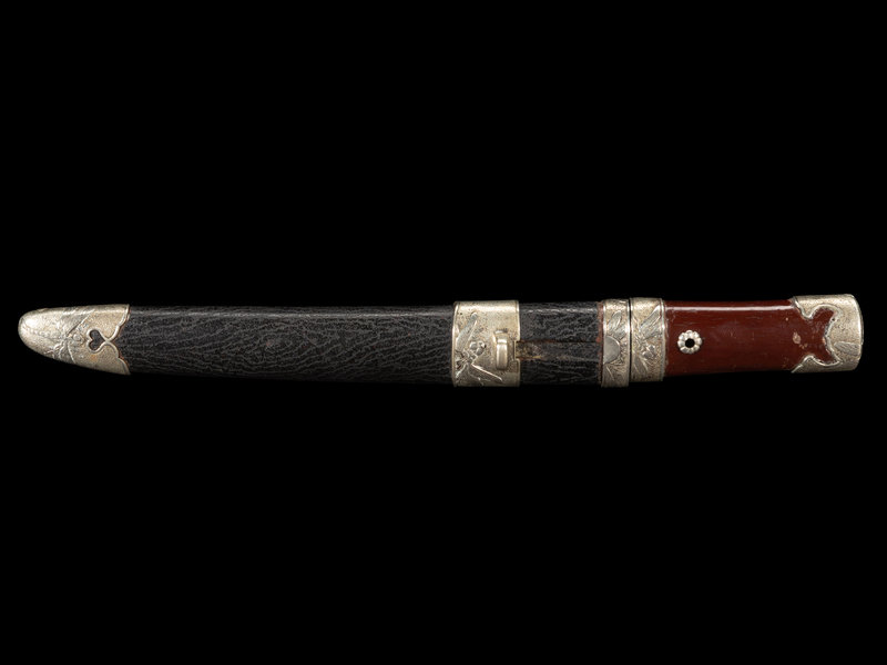 blade unsigned, the wood handle with silver colored fittings ensuite,