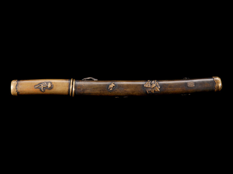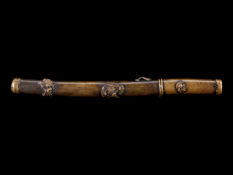 with metal mounts with a floral design, likely made for export.