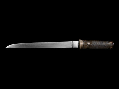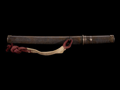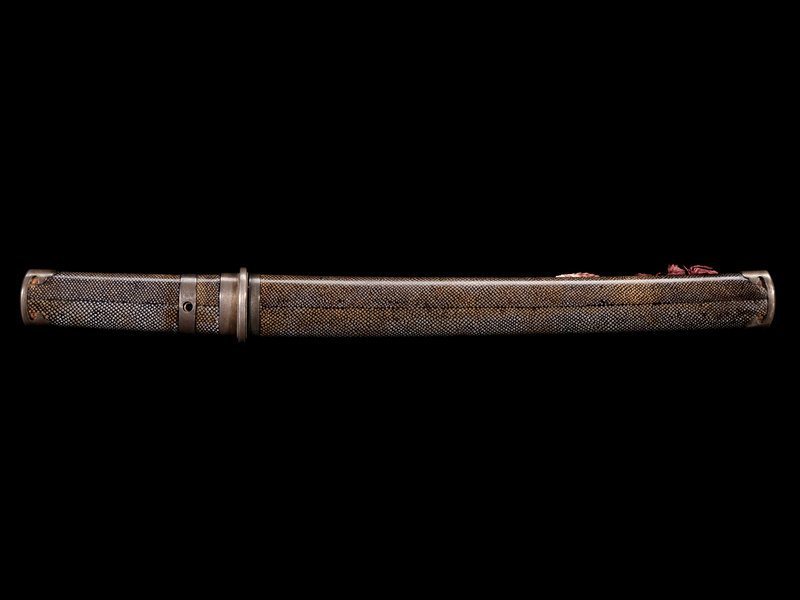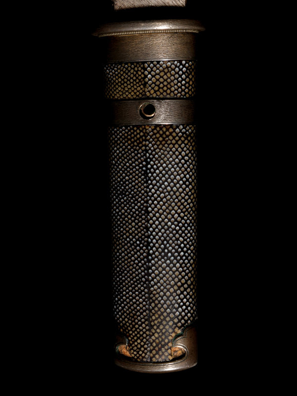 handled and scabbard base made of wrapped sharskin, soft metal fittings with a brushed pattern.