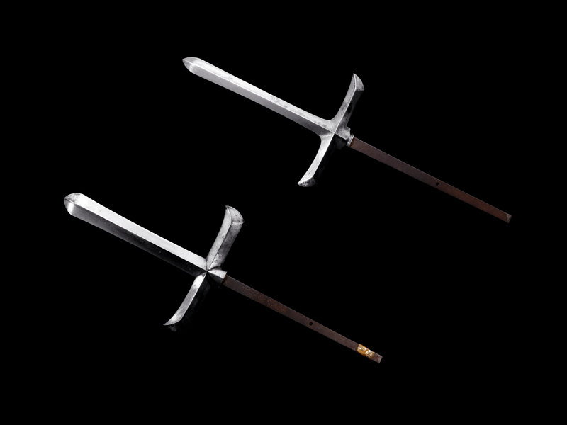 the first signed Yamashiro no Kami Kunishige, bare blade. the second unsigned, bare blade.
