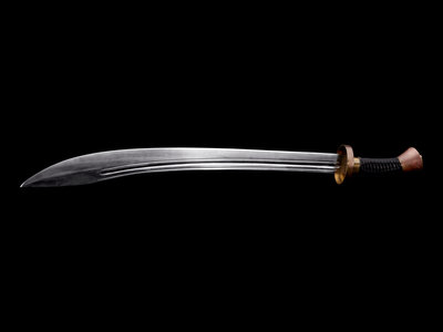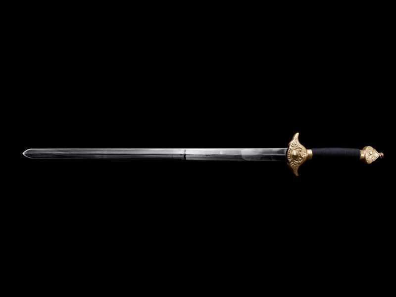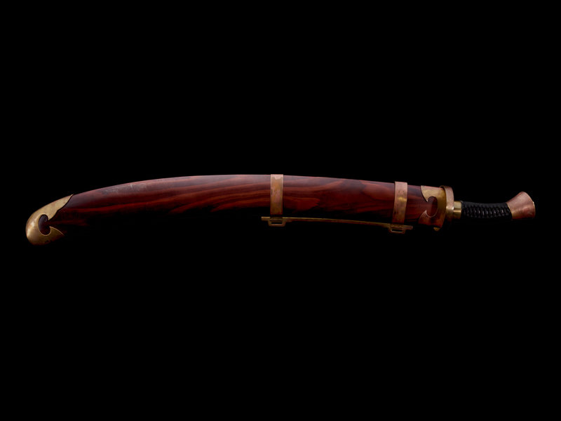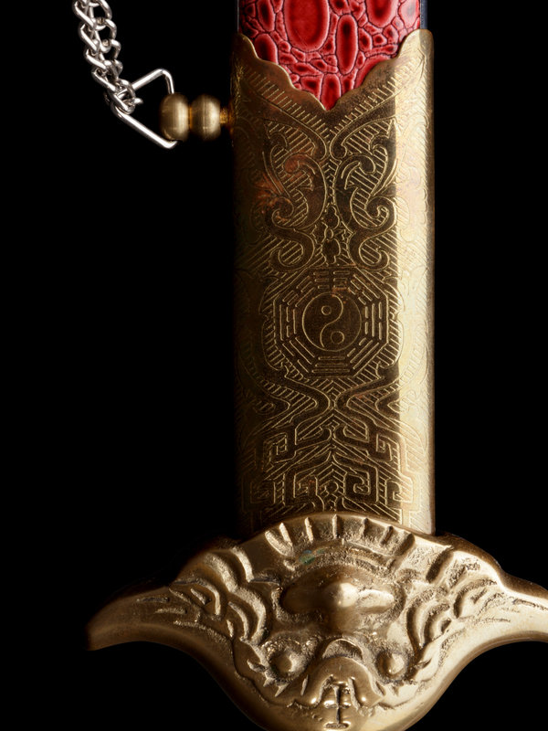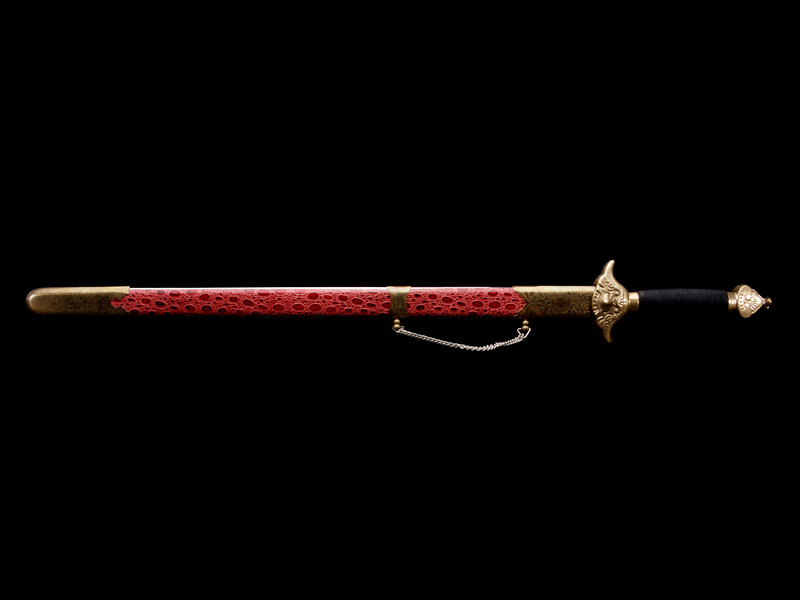 the first with a wood scabbard, the second a Tai Chi blade with a pink lacquered scabbard.