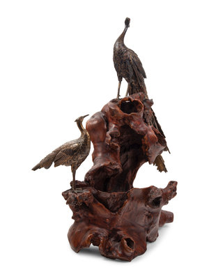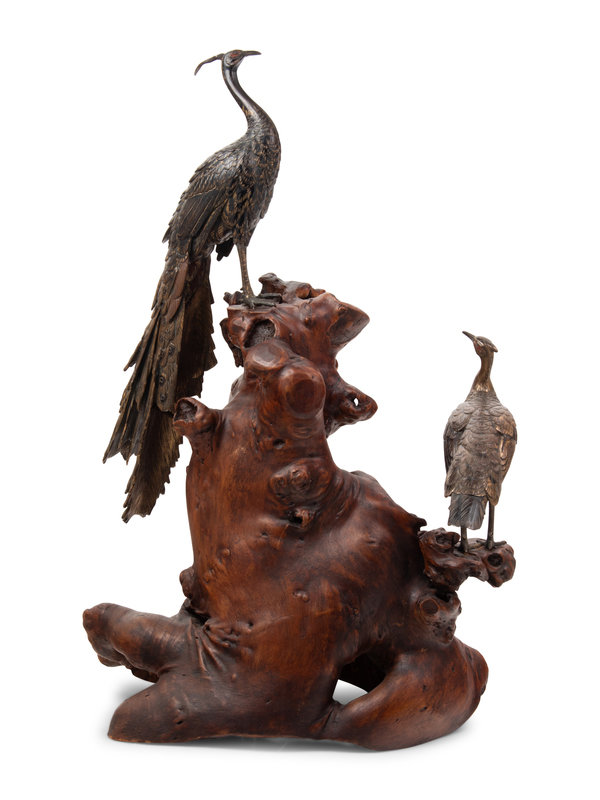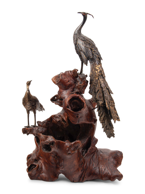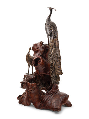 A Bronze Figural Group of Two Peacocks