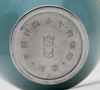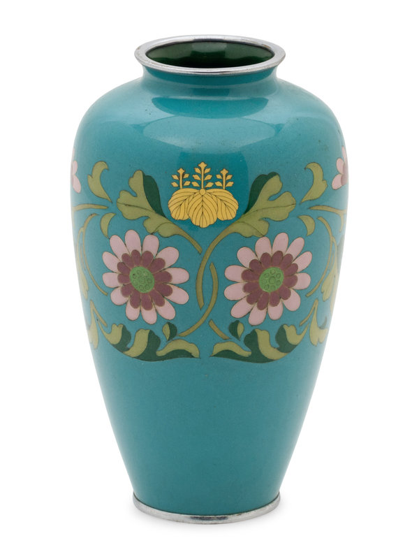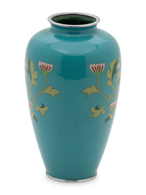 the baluster vase decorated with floral scrolls against a green ground, inscribed and dated to the underside.