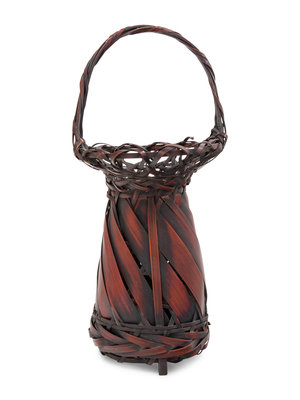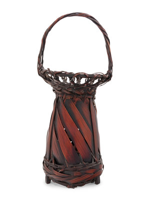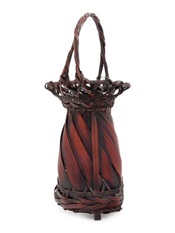 of cylindrical form with a flaring mouth, set with an overhanging handle.