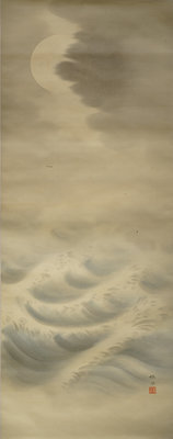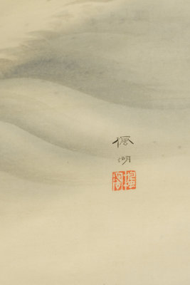 mineral pigments, gofun and sumi ink on silk, hanging scroll signed Fūko, sealed Fūko