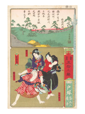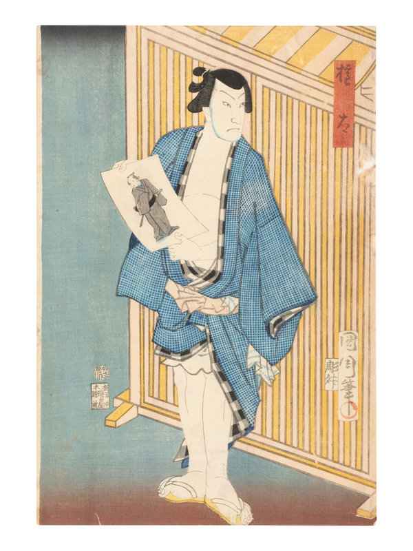 by various artists, depicting male figures and traditional opera.