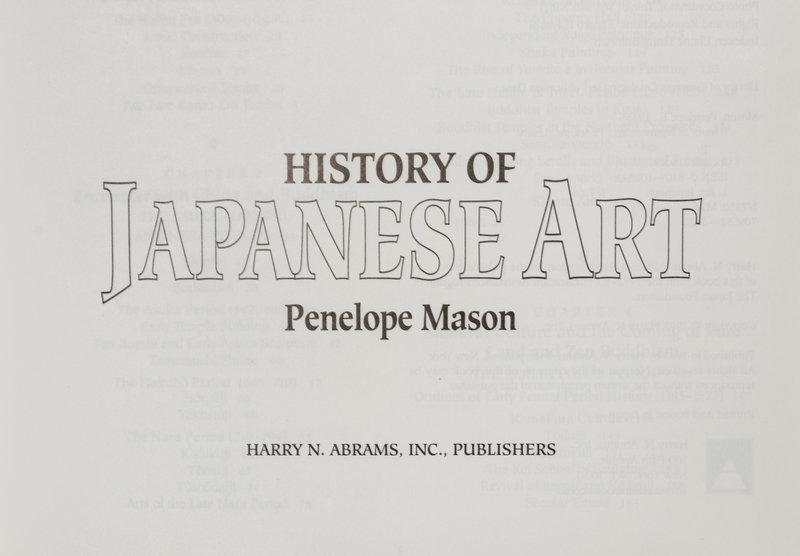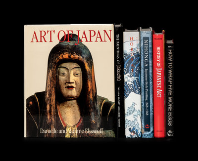MASON, Penelope. History of Japanese Art. 1993. —CALZA, Gian Carlo. Hokusai. 2003. —ELISSEEFF, Danielle & ELISSEEFF, Vadime. Art of Japan. 1985. —HICKMAN, Money L. & YASUHIRO SATO. The Paintings of Jakuchu. 1989. —CONANT, Ellen P. & OWYOUNG, Steven D. & RIMER, J. Thomas. Nihonga: Transcending the Past: Japanese-Style Painting, 1868-1968. 1995. —HIDEYUKI OKA. How to Wrap Five More Eggs: Traditional Japanese Packaging. 1982.