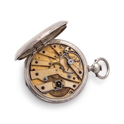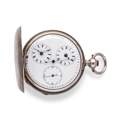 SILVER 'DOUBLE TIME' HUNTER CASE POCKET WATCH