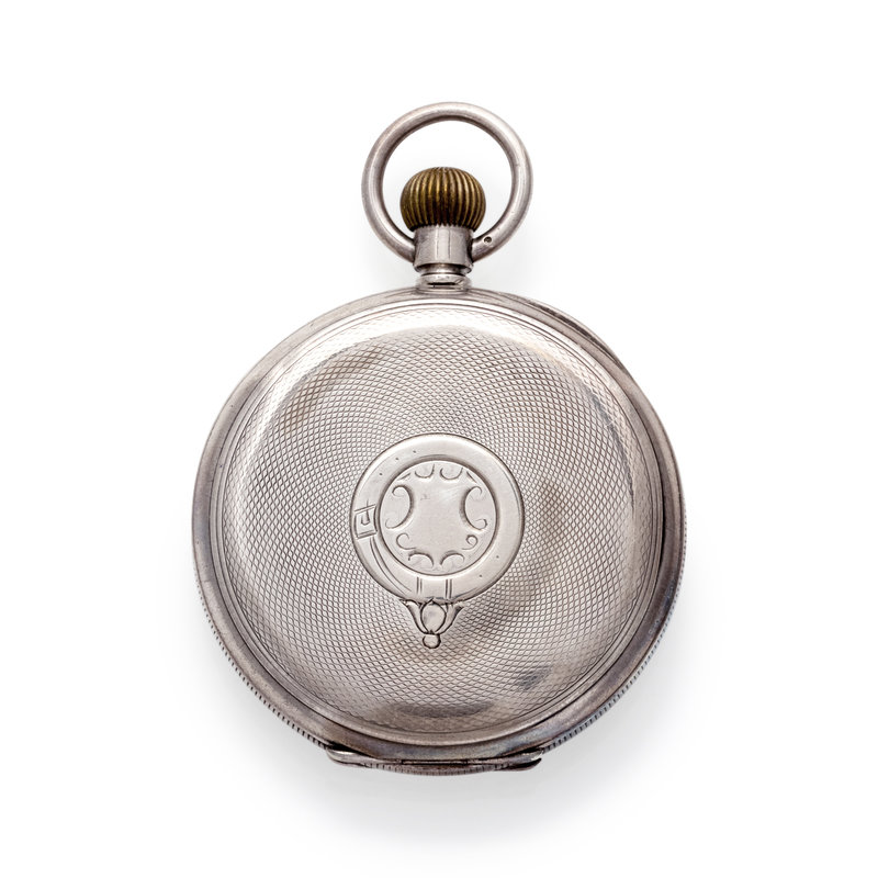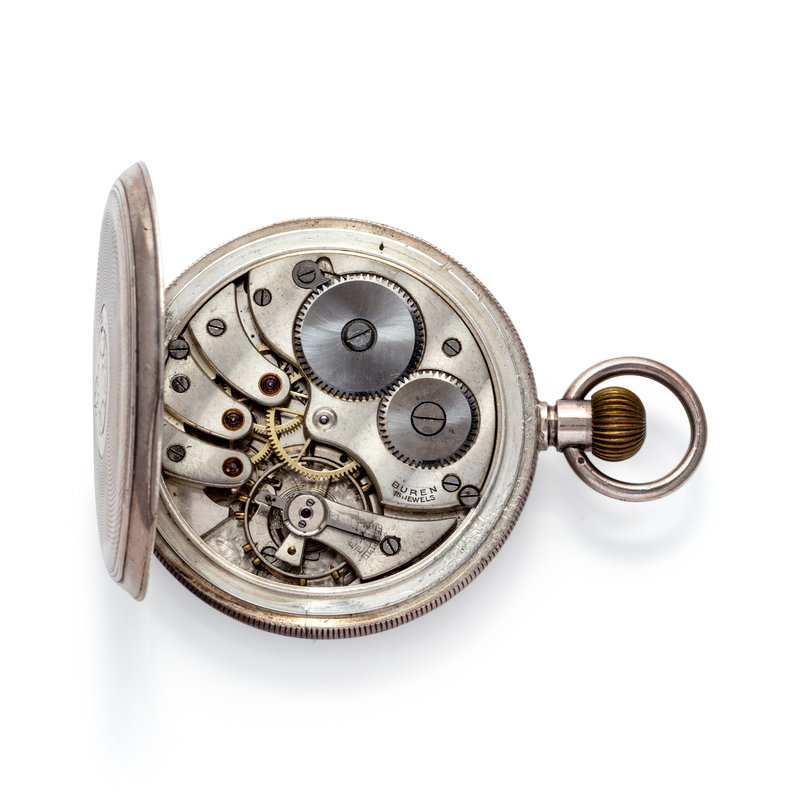 49.00 mm case diameter, white dial, black Roman numerals with outer chapter ring calibrated for minutes, subdial for seconds at 6 o'clock, stem wound and set 15 jewel nickel movement signed BUREN, engine turned case back with blank cartouche.