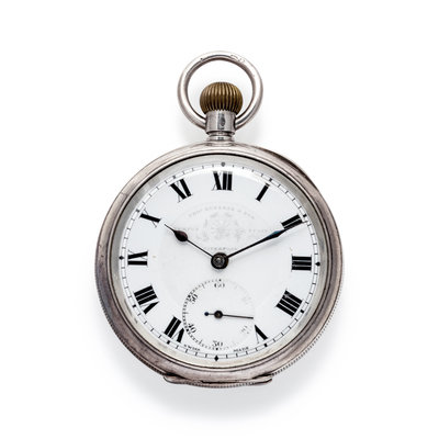 BRITISH, STERLING SILVER OPEN FACE POCKET WATCH