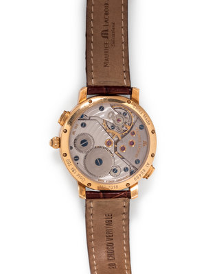 Case back stamp: Swiss Made AI 65490 MP 7018 Gold 18k 750 Masterpiece.