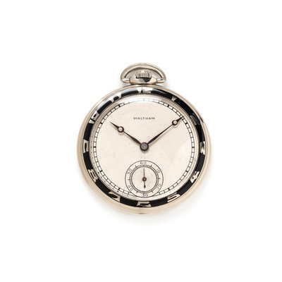WALTHAM, ART DECO, 14K WHITE GOLD OPEN FACE POCKET WATCH