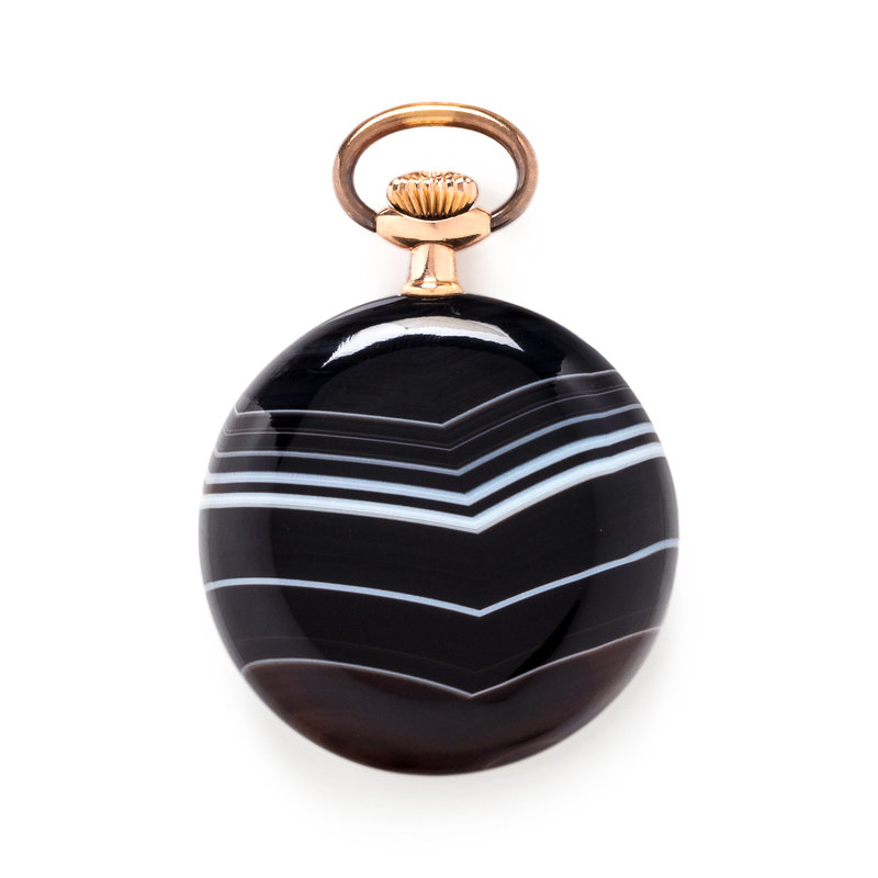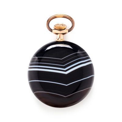 PINK GOLD AND AGATE OPEN FACE POCKET WATCH
