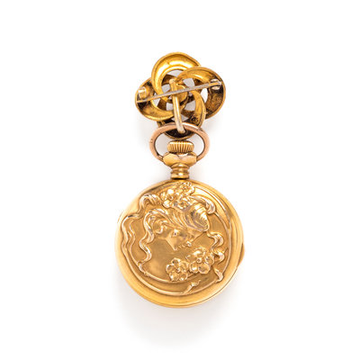 ART NOUVEAU, GOLD-FILLED LAPEL WATCH