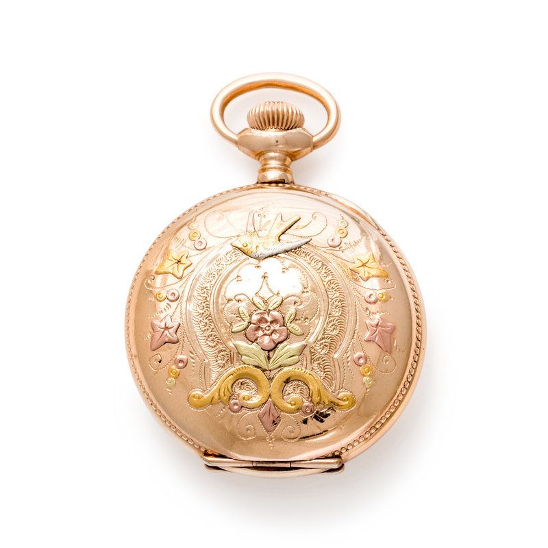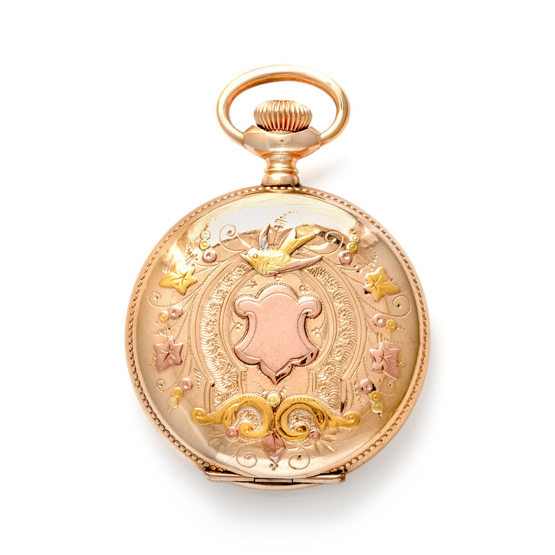 EDGEMERE, TRICOLOR GOLD-FILLED HUNTER CASE POCKET WATCH