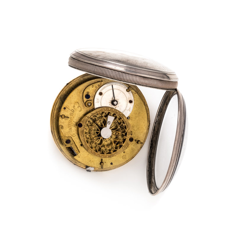 SILVER AND GILT-METAL OPEN FACE POCKET WATCH