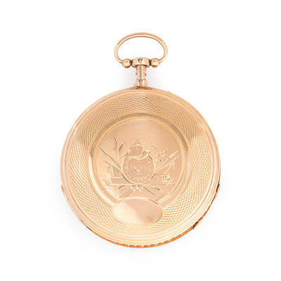 18K YELLOW GOLD AUTOMATON QUARTER REPEATER OPEN FACE POCKET WATCH