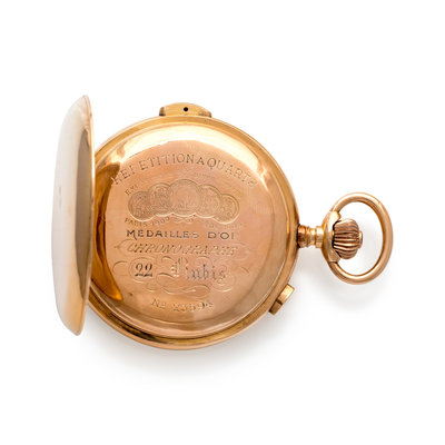 Cuvette engraved: REPETITION A QUARTS MEDAILLES D'OR CHRONOGRAPHE 22 Rubis No 73594.