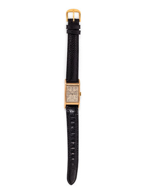39.00 x 20.00 mm case dimensions inclusive of lugs, matte silvered dial, single cut diamond numerals, subdial for seconds at 6 o'clock, Cal. 9L 17 jewel manual wind movement signed LONGINES, black lizard strap, gold tone tang buckle. 6 1/4-8 inches long.