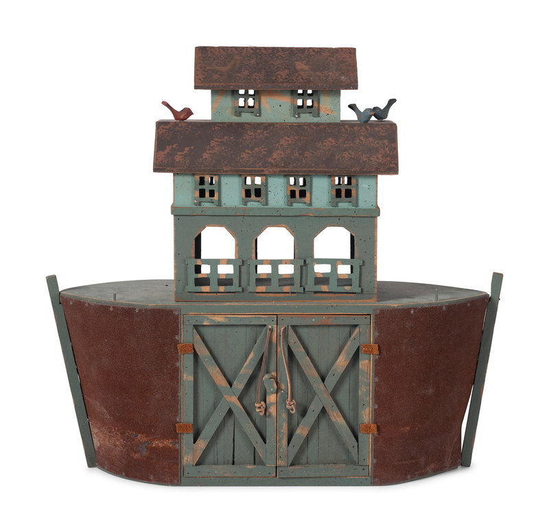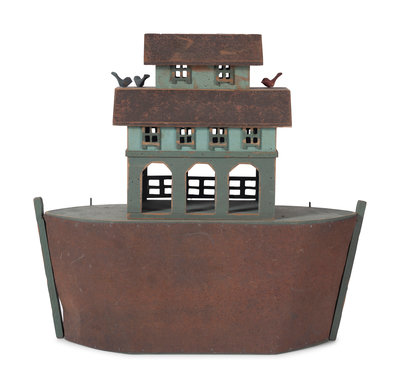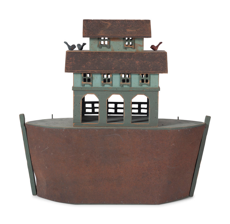 A Folk Art Painted Wood and Metal Noah's Ark by Barry Grosscup
