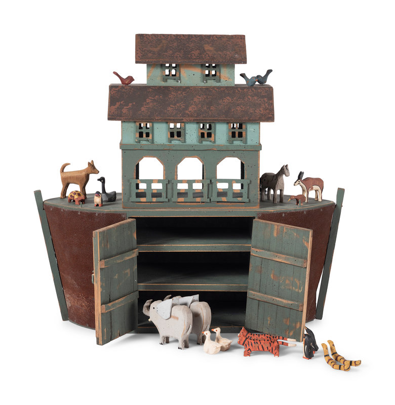 from the edition made for the Millwood Toy Company (Ohio), accompanied by seventeen carved and painted animals.