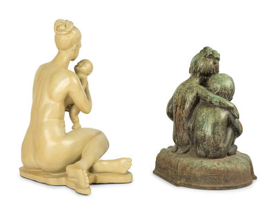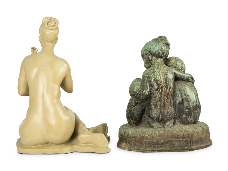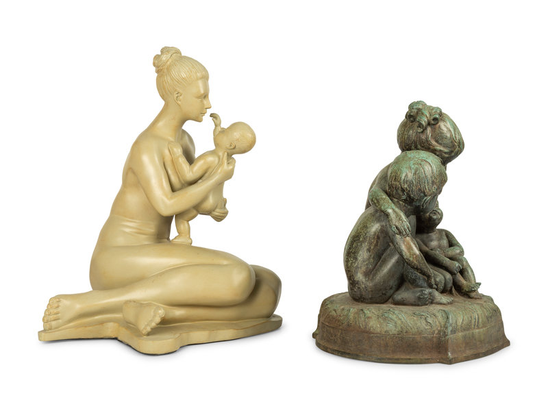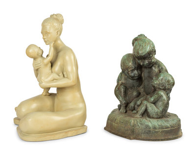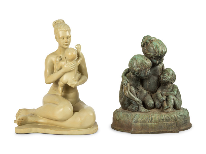 a bronze depicting a group of children, signed Mabel Landrum Torrey Sc. to the reverse of the base; together with a plaster sculpture depicting a mother and child.