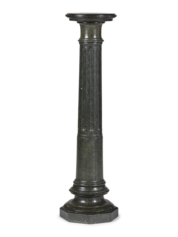 A Neoclassical Fluted Green Marble Octagonal-Base Pedestal
