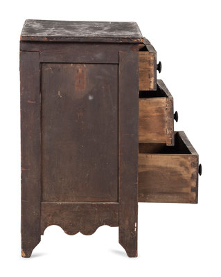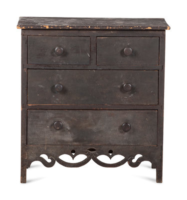 A Classical Black-Painted Cherrywood Diminutive Chest of Drawers