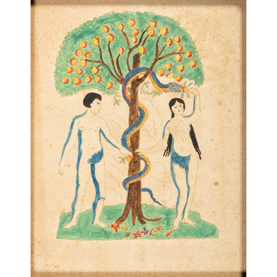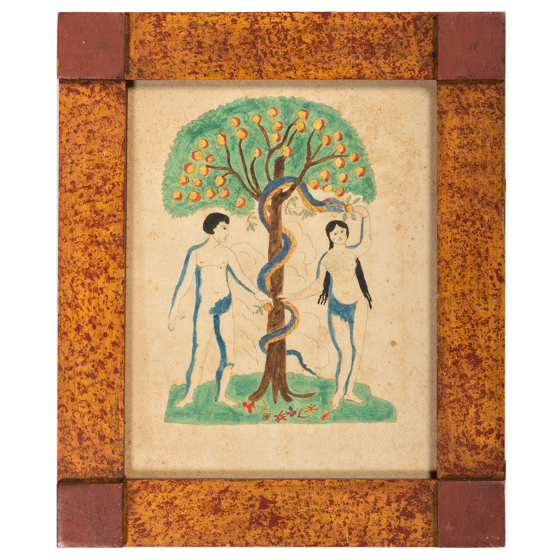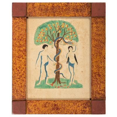 An Adam and Eve Watercolor in Painted Frame