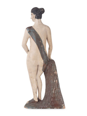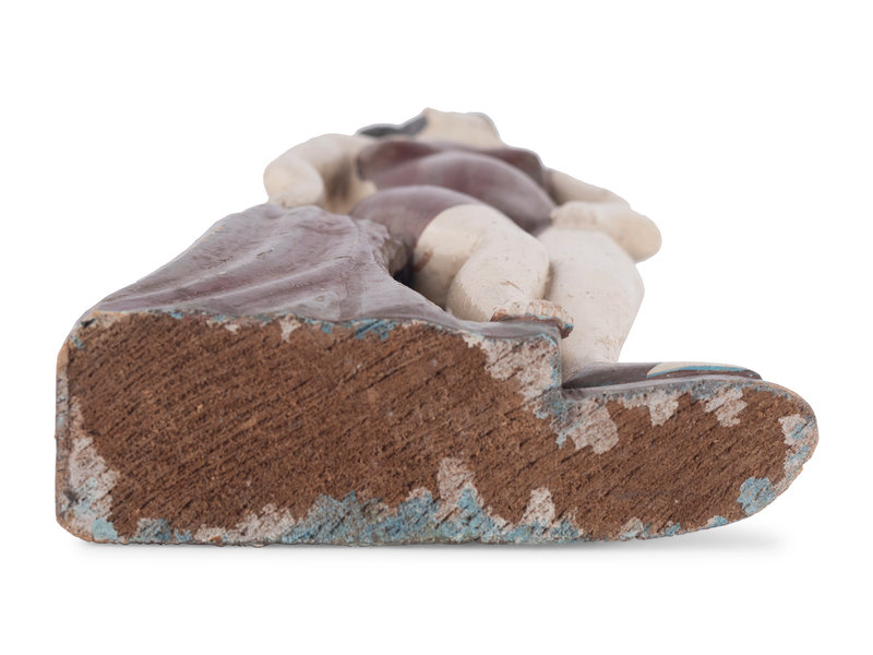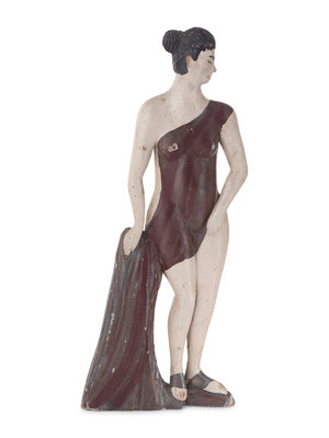A Carved Wood Folk Art Bather Figure Draped in a Robe