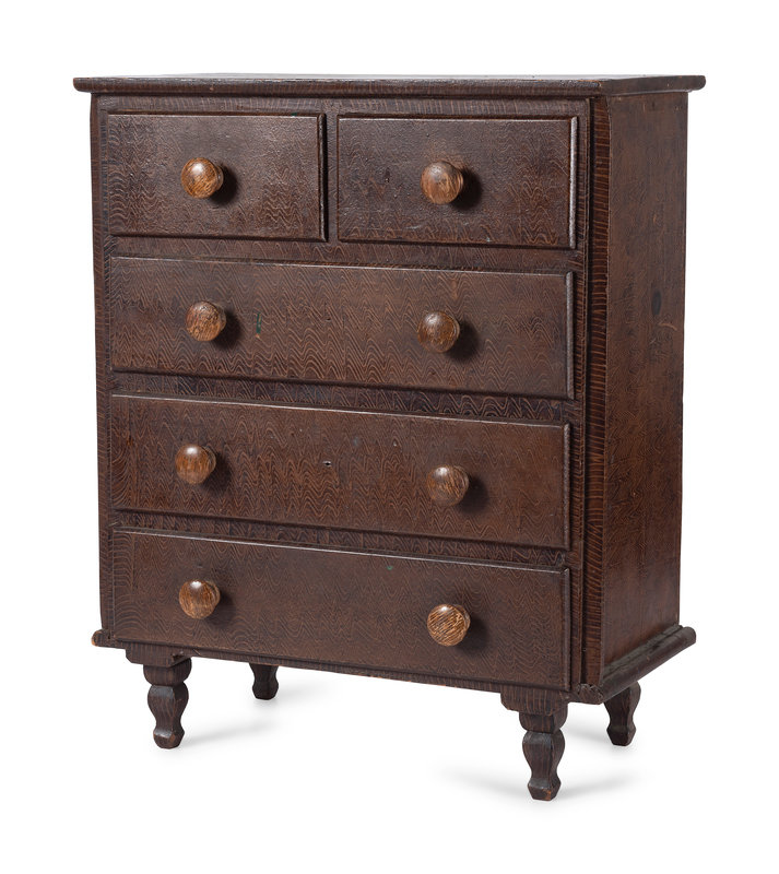 A Federal Five-Drawer Miniature Grain-Painted Chest of Drawers