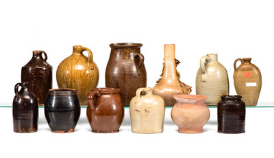 Twelve Stoneware, Redware and Earthenware Jugs, Pitchers and Vases
