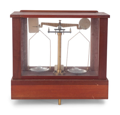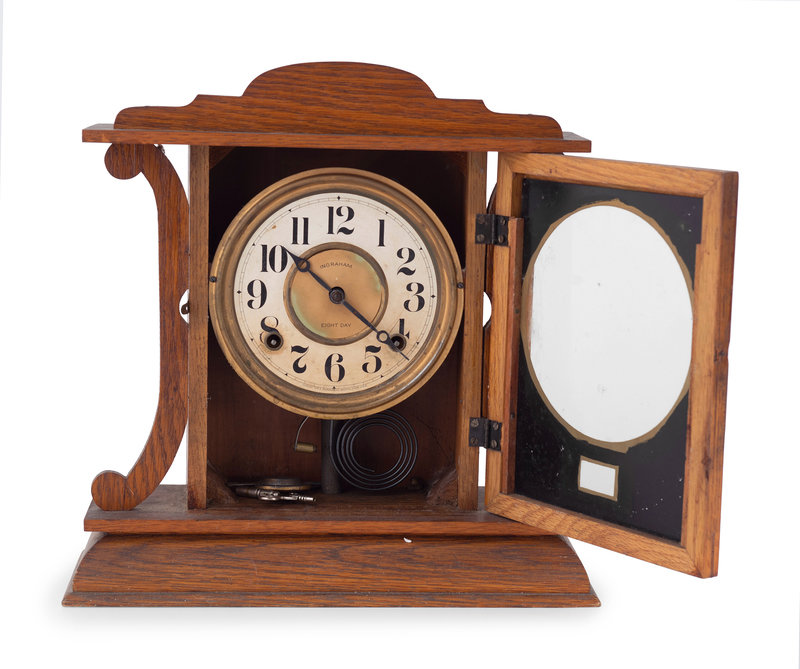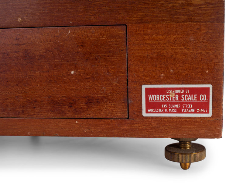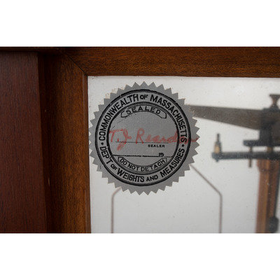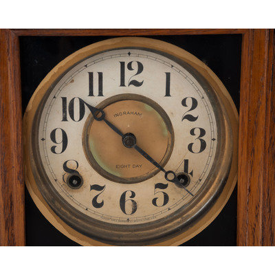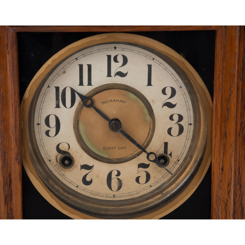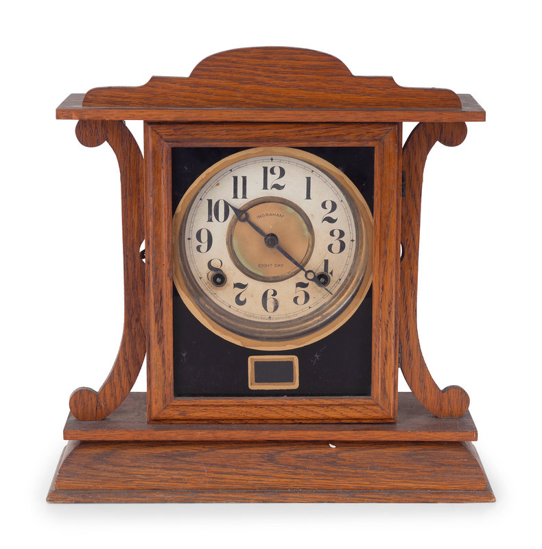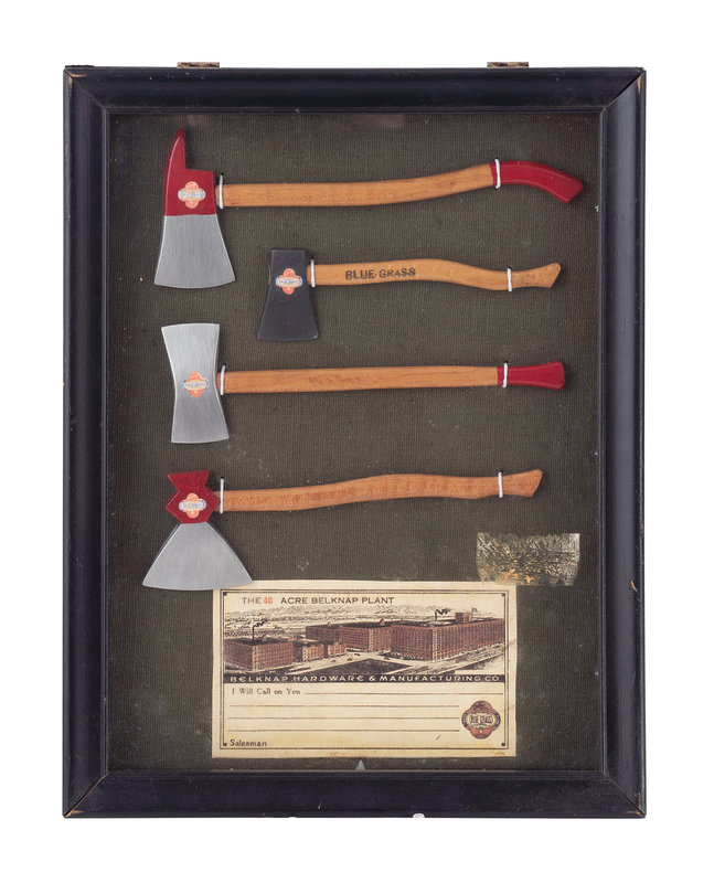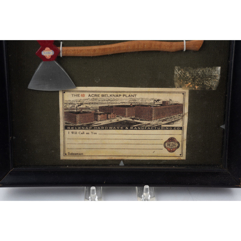 A Central Scientific Co. Scale, an Ingraham Eight-Day Movement Mantle Clock and Framed Salesmen Samples of Blue Grass Axes