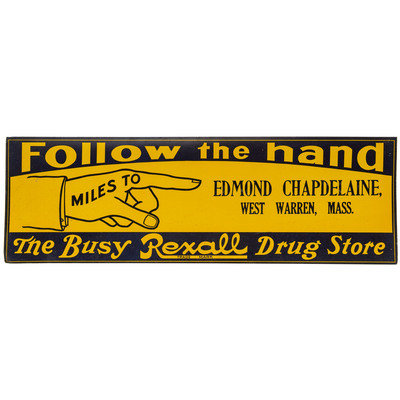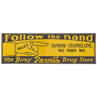 including three Blackstone Cigar signs, two Rexall Drug Store signs and a Clabber Girl sign.