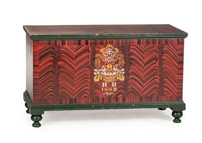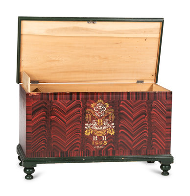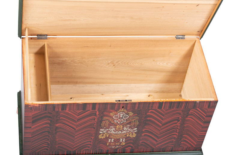Of the known Werrey chests painted in this style, this is generally acknowledged to be the best preserved, retaining most of original vibrant paint.