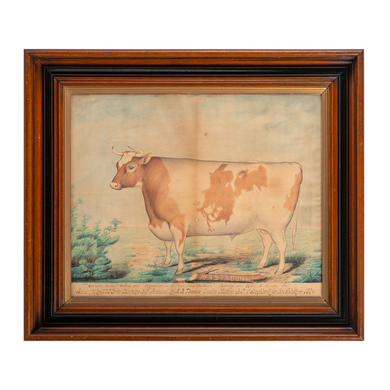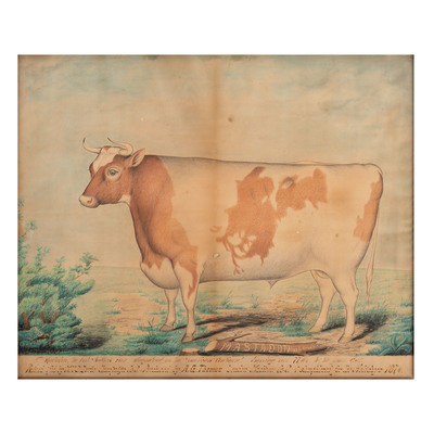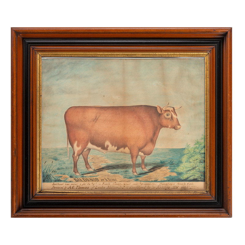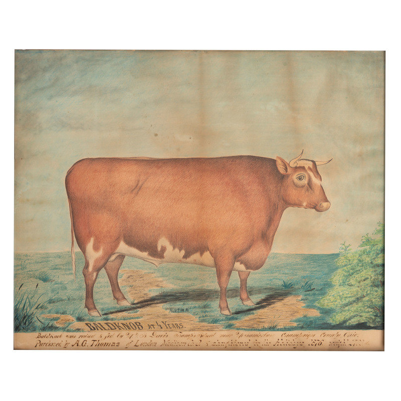 Baldknob was raised and fed by M.V.B. Davis Tramp's Head Retreat near Mechanicsburg Champaign County Ohio / Purchased by A.G. Thomas of London Madison Co. O. & slaughtered for the Holidays 1876. Weight 2700 lbs.