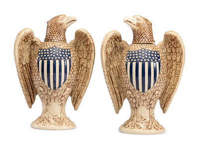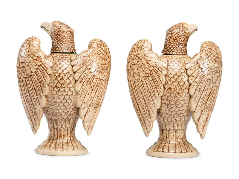 A Pair of Merkelbach & Wick Stoneware Eagle Decanters