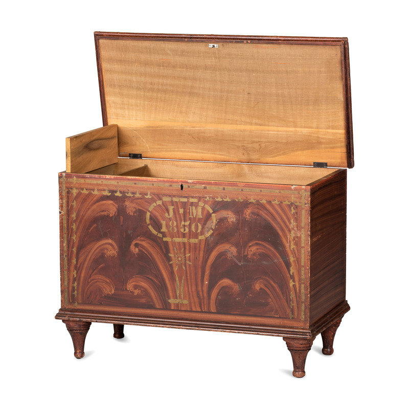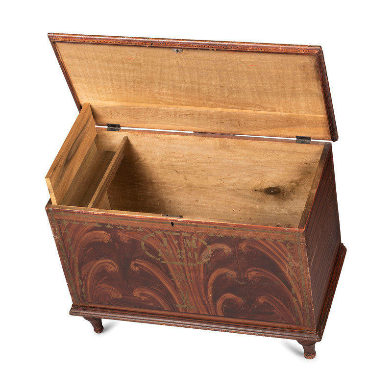A Wooster, Ohio Grain Painted and Stencil Decorated Poplar Blanket Chest