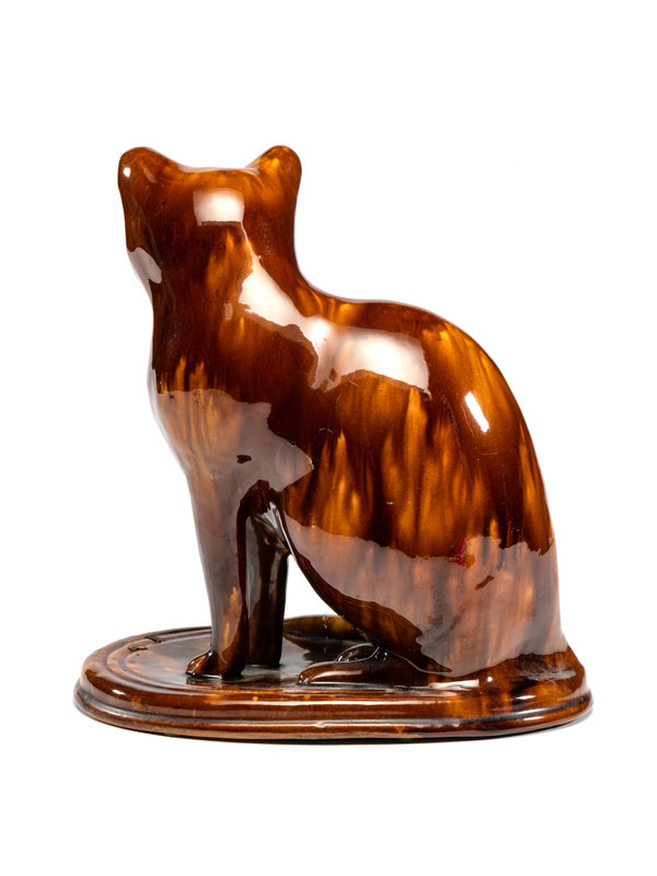 A Rare Rockingham Glazed Yellowware Seated Cat