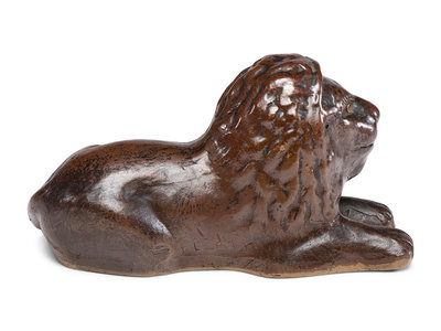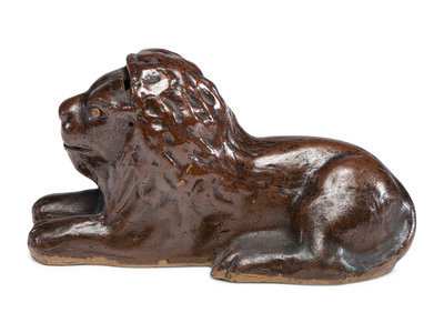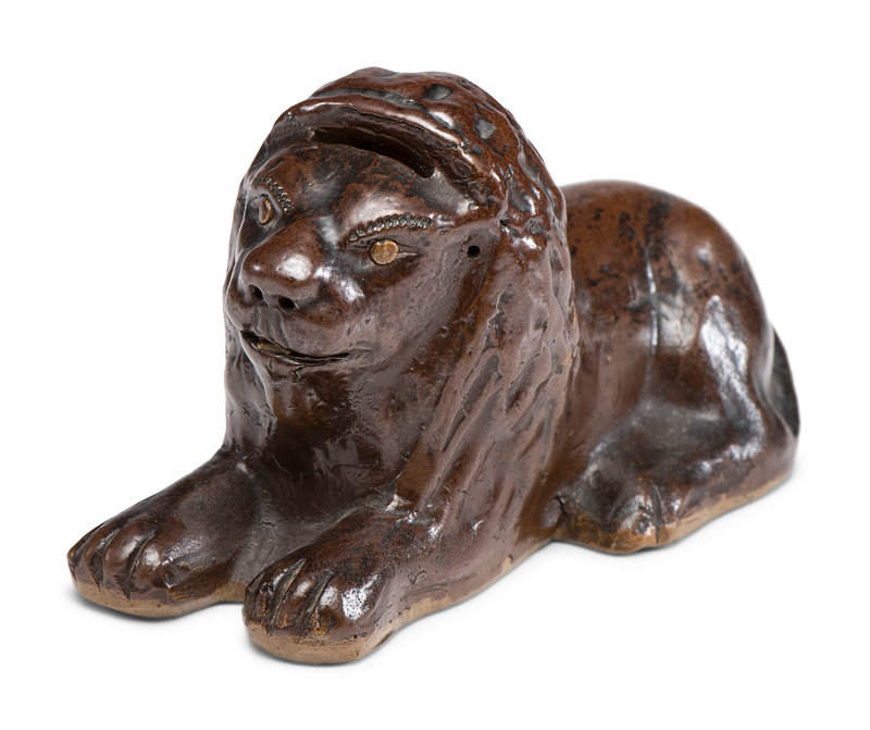 A Scarce Ohio Stoneware Recumbent Lion Bank