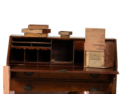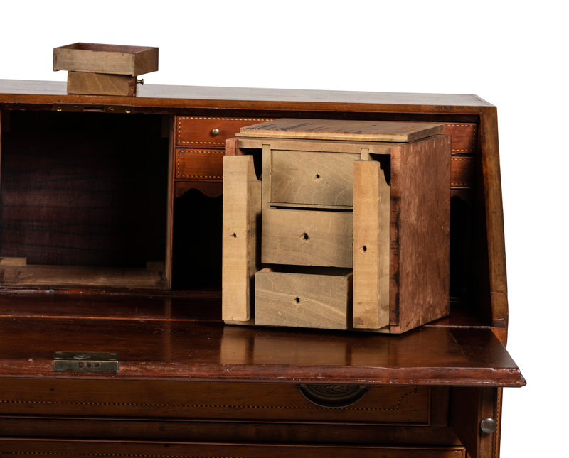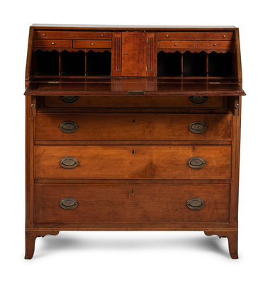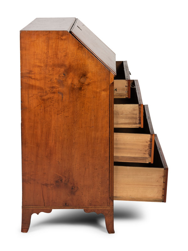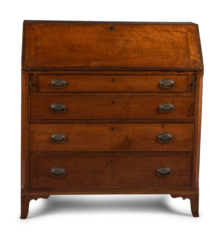 A Federal Barber Pole Inlaid Cherrywood Slant Front Desk