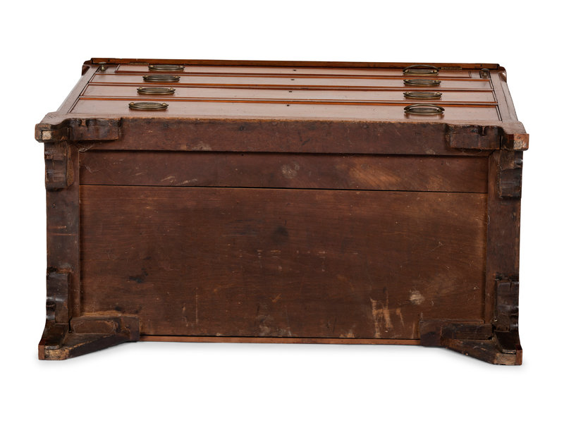 the central compartment slides out concealing 5 drawers behind the back panel.
