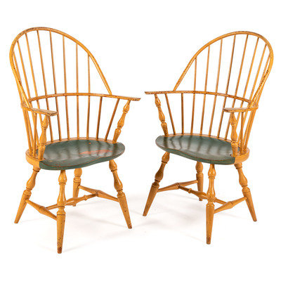 A Pair of Chromium Yellow Windsor Chairs by David T. Smith