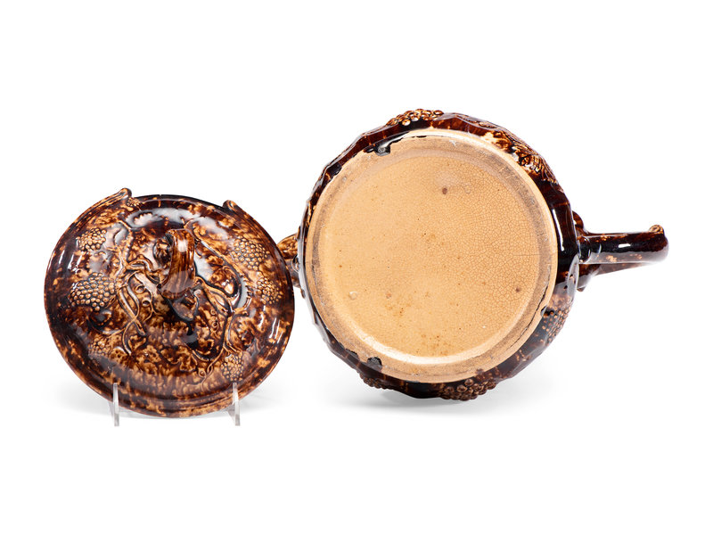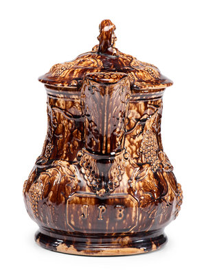 See Goldberg 2003: 39, fig. 22 and 23 for a similar example in yellow ware; Branin 1988: 200 for facsimile of Swan Hill advertisement for Covered Grape Ice Pitchers; and Claney 2004: 50, fig. 20 and color plate 7 for a similar example.