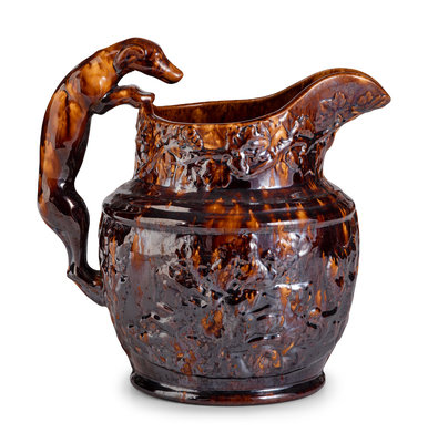 A Large Harker Hound Handle Rockingham Pitcher