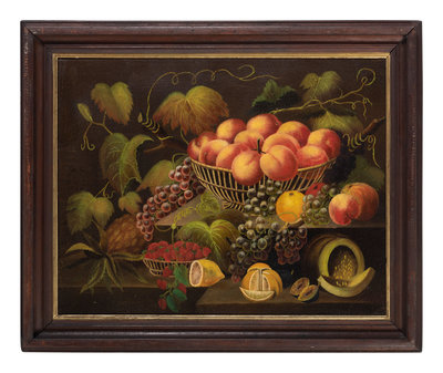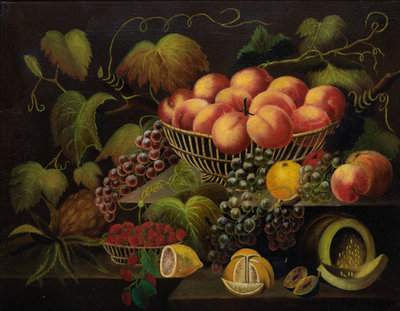 Still Life of Berries, Grapes and Peaches in Lattice Bowl