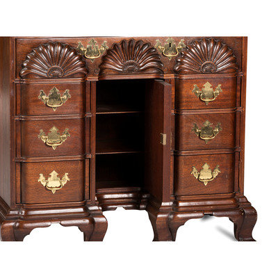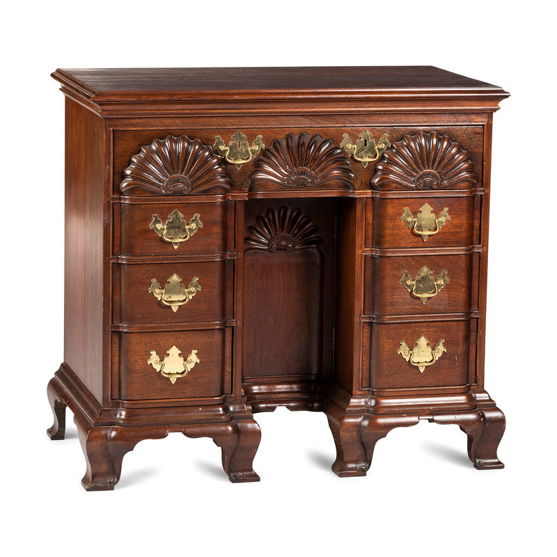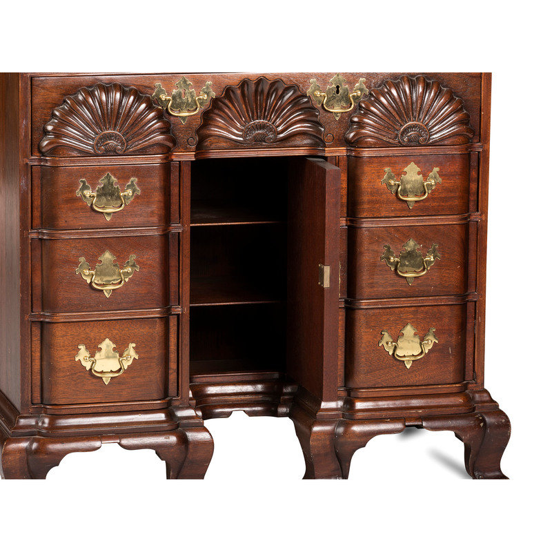 A Chippendale Style Shell-and-Block Carved Mahogany Kneehole Dressing Table